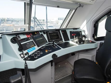 This is the cab of the locomotive, where the engineer sits to operate the train. The locomotive offers significant advantages, including improved performance and reliability, a smoother ride, and lower fuel usage.